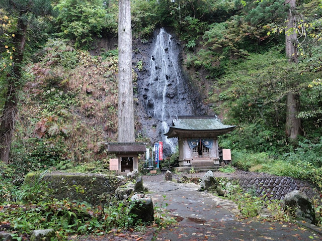 橋からは、須賀の滝が見えます。禊ぎをする場所ですが、実は、江戸初期に羽黒山を本山(天台宗の末寺)とした天宥(1593?-1674)が、川を引いてきて滝にしたものです。石段や杉並木とともに整備したそうです。死後の世界へ入る三途の川とも見立てられています。