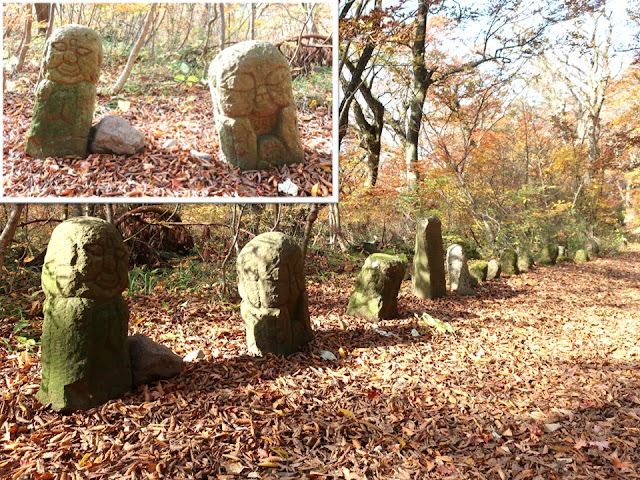 道ばたにやさしいお顔の石ぼとけさまが並んでいました。参拝者を見守ってきたのでしょうね。