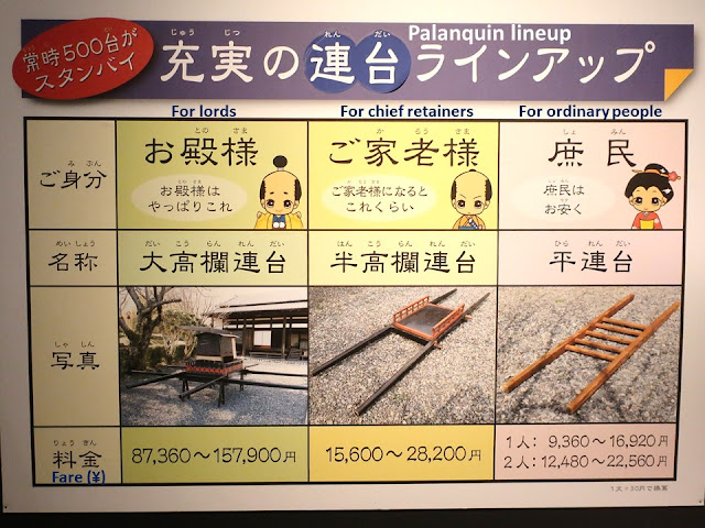 There were various kinds of palanquins. A real one for ordinary people is exhibited. The fare depended on the water level.
